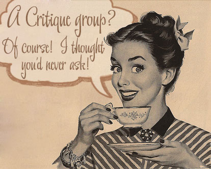 The critique group is a group of people who get together to critique each other’s work. No writing takes place at their meetings, only group critiques. Sometimes they send each other their works in advance; other times, they each read a bit of work (either a short chapter or a scene) to be critiqued on the same evening, and others still focus on one single member per evening, permitting longer works to be read (whole chapters and sometimes longer). When they do read to each other, the critiquing members make notes of what they notice so as to not interrupt the flow of the story, and when the reading is over they comment.