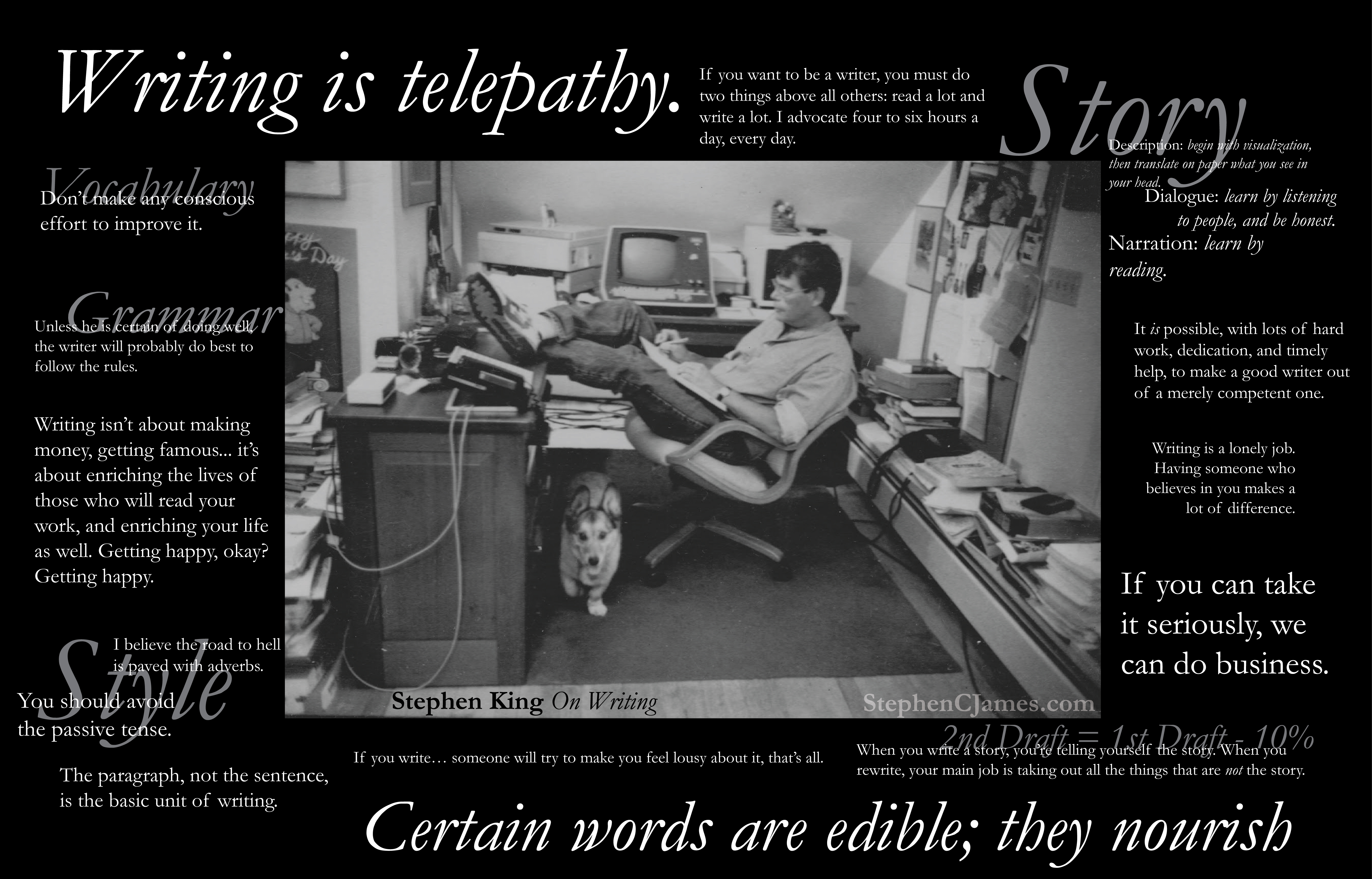 Today’s book recommendation is good for writers who are beginning as well as those who have been honing their craft for 30 years; it is FANTASTIC, and I would be surprised if you did not find at least some helpful information. Full of good advice, the best of which being the constant reminder that “this is what works for me, it might not be what works for you”. It’s not meant as a step-by-step guide book, and it is fairly narrative and filled with examples; but it is one of the best (and most famous) books about the craft, and I found it very helpful. The edition I read had an addition at the back which had a rough draft with revisions, which was very useful. I recommend it!
