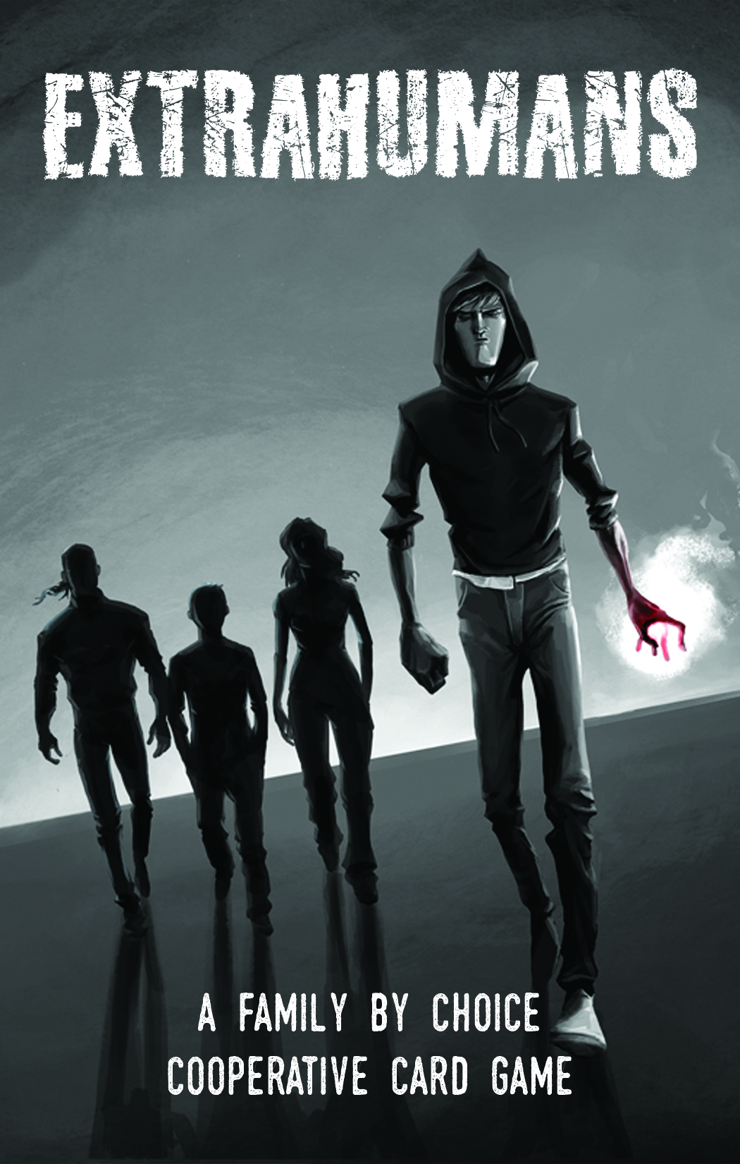 Extrahumans is a cooperative adventure card game based on the Family by Choice series. While it is absolutely not necessary to have read the books before playing the game, it certainly adds to the enjoyment. Pick one of the series’ most prominent characters, and team up to get through events… but be careful! Resources are limited, and if one of you dies, you all lose the game!